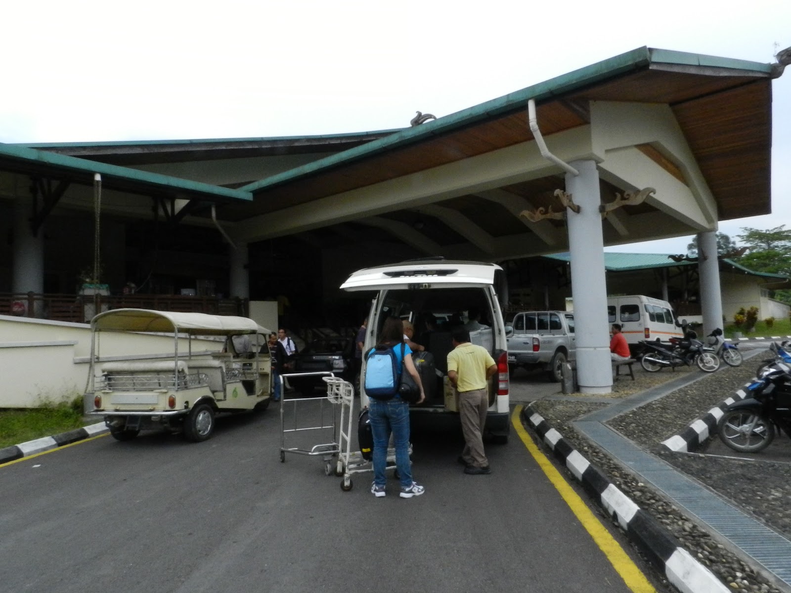 Putting our luggage in the Mulu Resort' van. On the left was our transport to Resort |